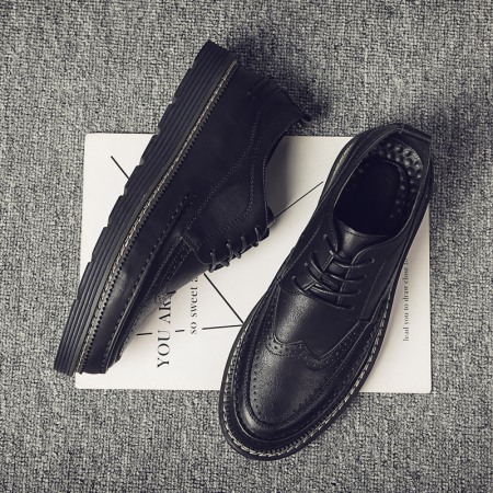 Autumn Bullock Men's Shoes British Trendy Shoes Casual Business Dress Shoes Mens Pointed Black Small Leather Shoes