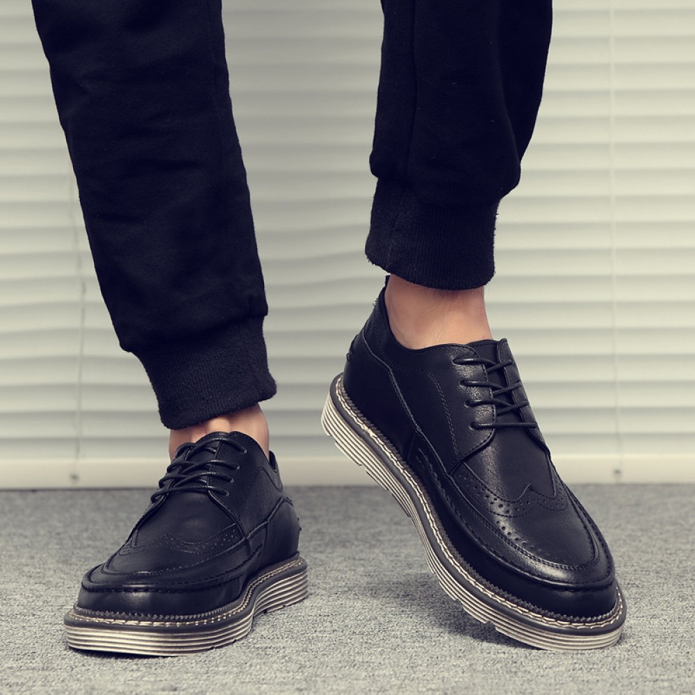 Black Men's Small Leather Shoes Mens Trend Casual Leather Breathable Shoes