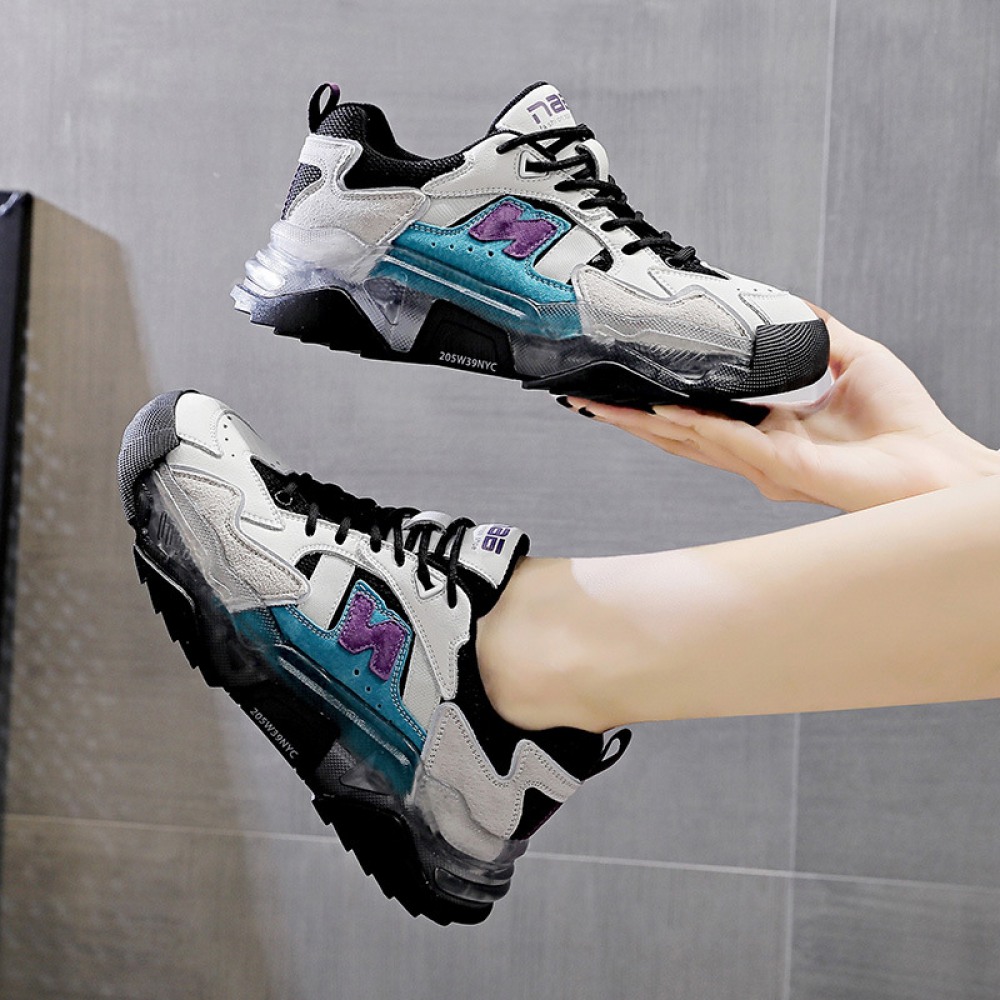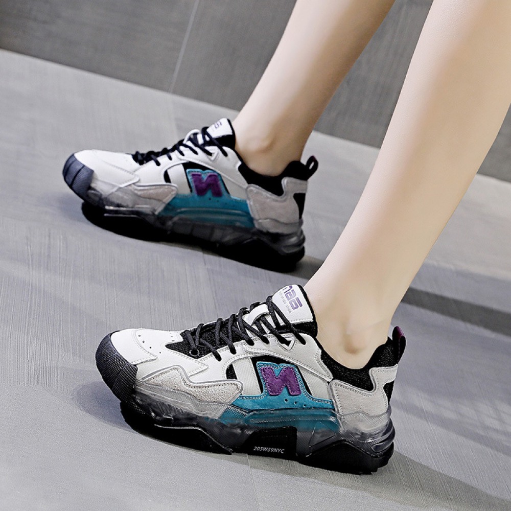 Women's Autumn New Casual Sports Shoes Color Matching Thick-Soled Breathable Shoes Plus Velvet Shoes Women