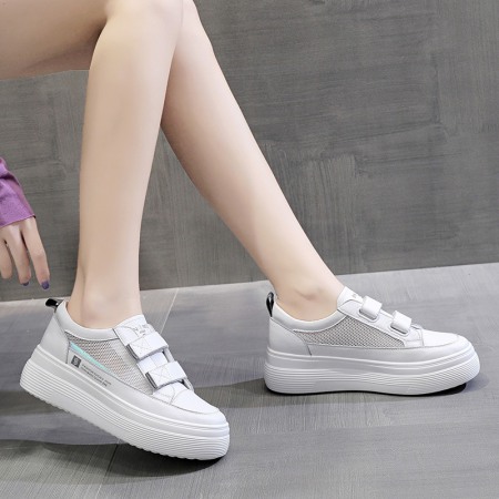White Shoes Women's Spring New Flat-Bottom Heightening Shoes Thin Casual Hollow Breathable Shoes